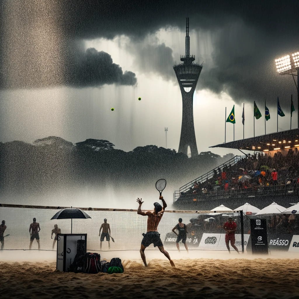 As condições climáticas foram um obstáculo significativo, causando a paralisação da segunda partida no início do segundo set. Apesar da retomada do jogo, este terminou sob um forte temporal.