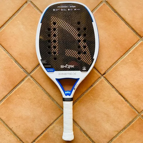 A Raquete de Beach Tennis Shark Prokennex Kinetic X é um modelo inovador que combina o melhor da tecnologia Kinetic com uma construção robusta e potente. Ideal para jogadores avançados, ela oferece conforto, potência e controle, tudo isso sem sacrificar a saúde do braço do jogador.